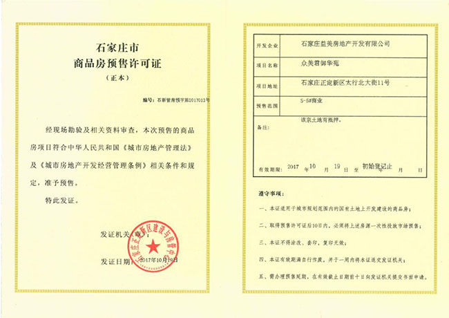 石家庄365足球彩票建设与房管中心关于2017013预售许可公示