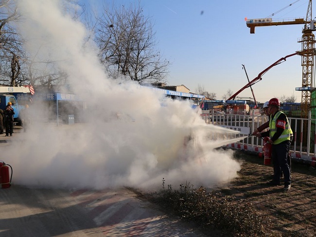 大队参谋翟莉结合冬季在建工地火灾特点,首先对工地临时用房耐火等级及安全用火用电情况、是否使用大功率电器、是否存放易燃易爆物品等情况进行了仔细询问。随后宣讲人员针对工地员工消防安全意识淡薄,防火自救能力不强等特点,现场向施工人员讲解几种常见灭火器的使用方法、消防安全知识,教会如何查改火灾隐患、如何报火警、如何逃生自救等消防安全方面的知识,随后向工地员工发放宣传单,大队宣传员发放宣传单的同时,根据宣传单内容向现场施工工人们讲解了火灾的危害性、火灾预防的重要性以及生活中的用电用气防火常识等消防知识,最后组织开展了实战灭火演练,熟悉掌握消防器材的使用及扑救的要点。宣传结束后,翟莉参谋要求单位负责人:一是抓好现场电焊及其他用火、用电的消防安全管理,落实好工地工棚的各项安全措施,严防各类火灾事故发生;二是单位负责人要积极开展消防宣传教育,向工地施工人员宣讲防火、灭火和自救逃生知识,提高他们自防自救能力。