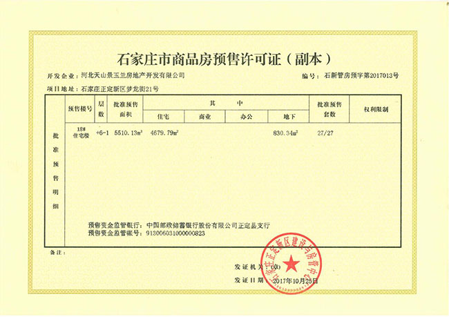 石家庄365足球彩票建设与房管中心关于2017013预售许可公示