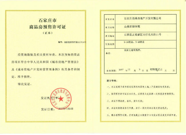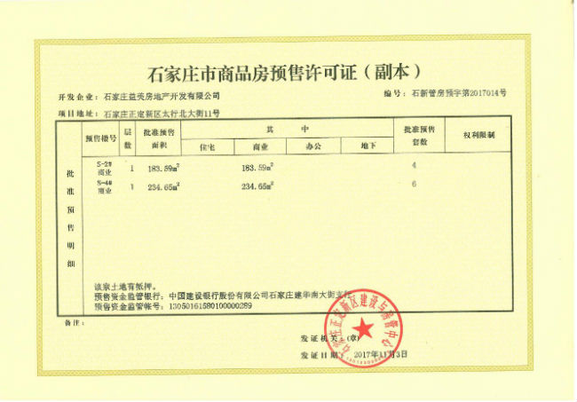 石家庄365足球彩票建设与房管中心关于2017014预售许可公示